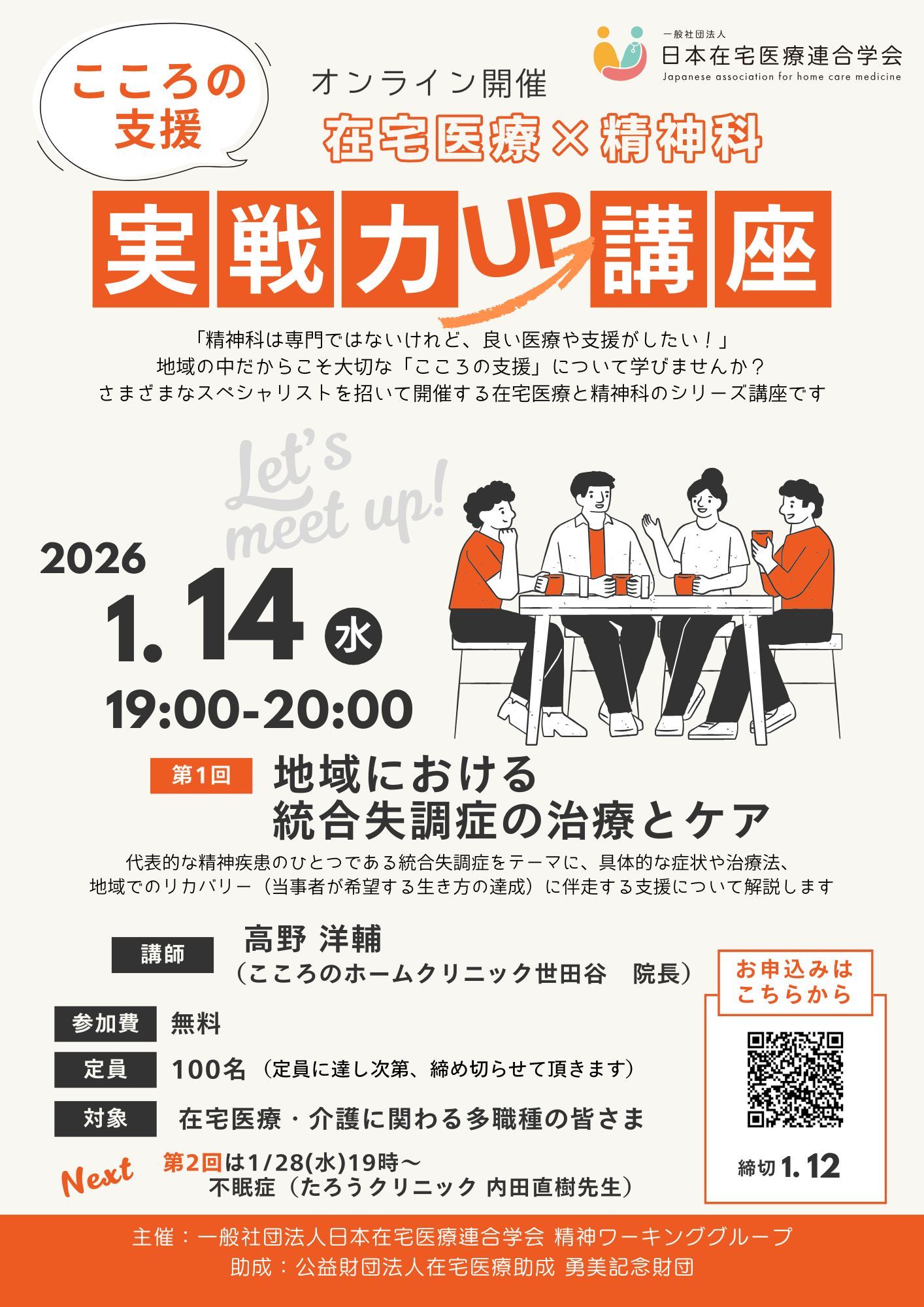在宅での精神領域のスキルアップを目的とした連続講座を企画することとなりました。
