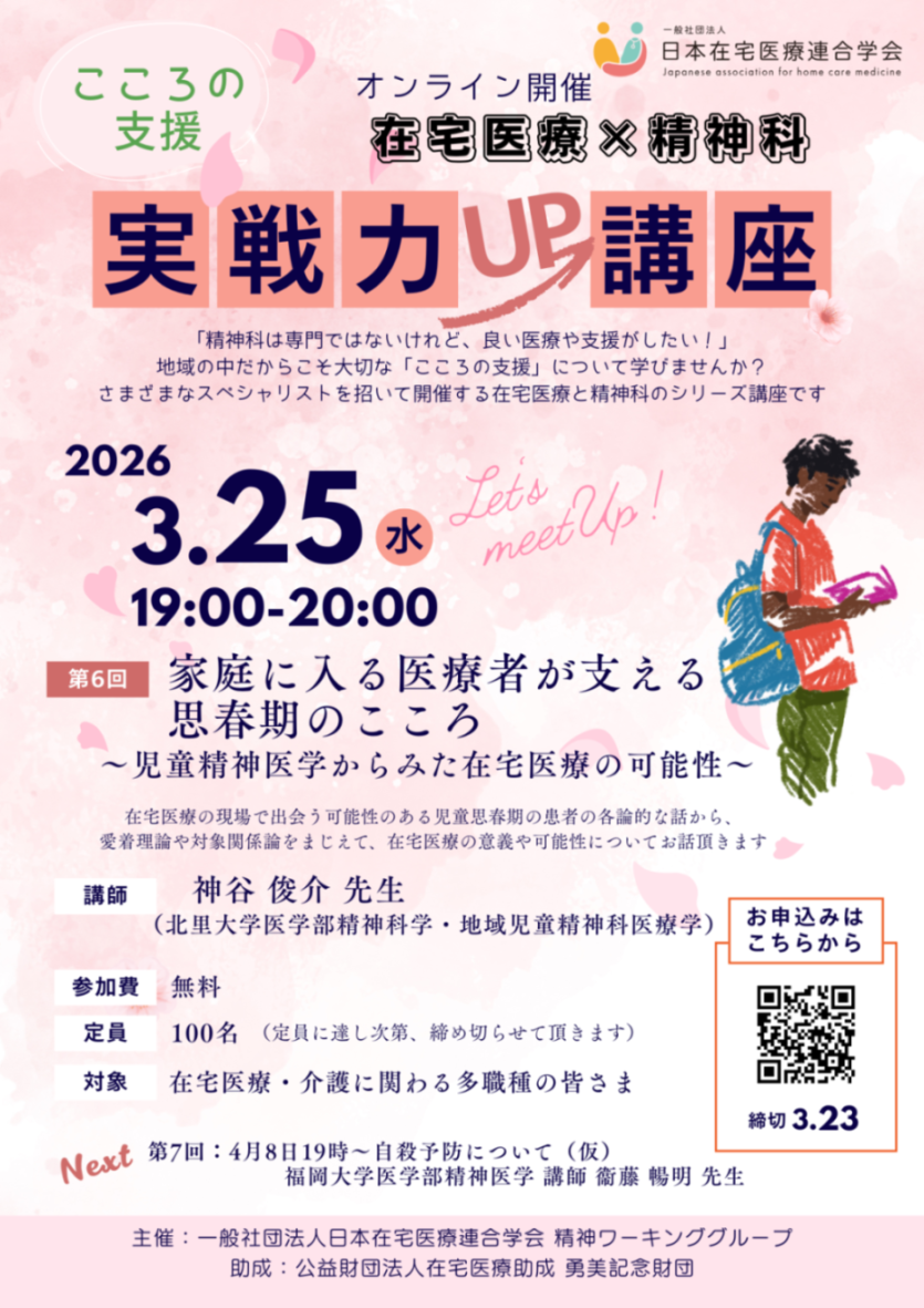 第6回在宅医療✕精神科 実践力UP講座「家庭に入る医療者が支える思春期のこころ」〜児童精神医学からみた在宅医療の可能性〜